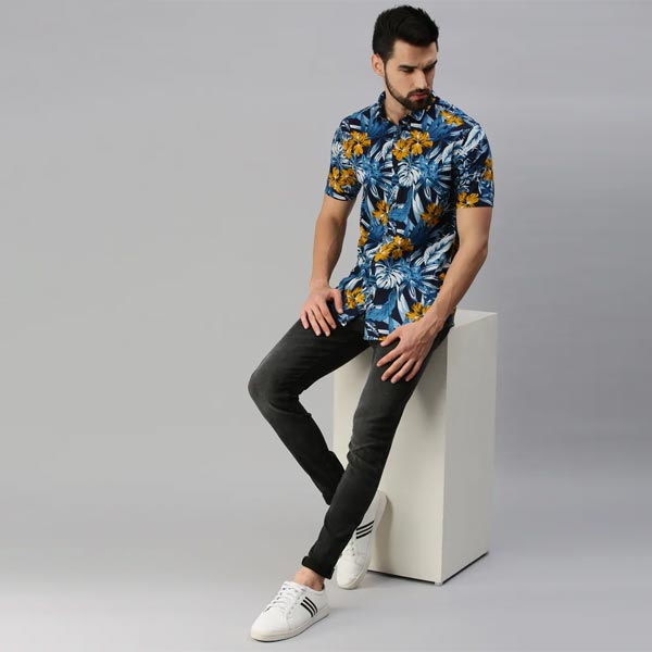 - product details : showoff men casual cotton printed slim fit shirts